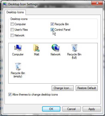 幸いなことに、コントロールパネルのショートカットアイコンを表示するようにデスクトップを構成することができます。