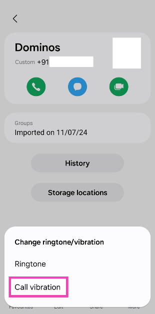 連絡先アプリを起動し、連絡先を選択し、移動します詳細>振動を変更します、およびリストからパターンを選択します。