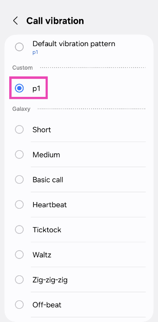 ステップ5:を選択しますカスタム振動パターンリストから。