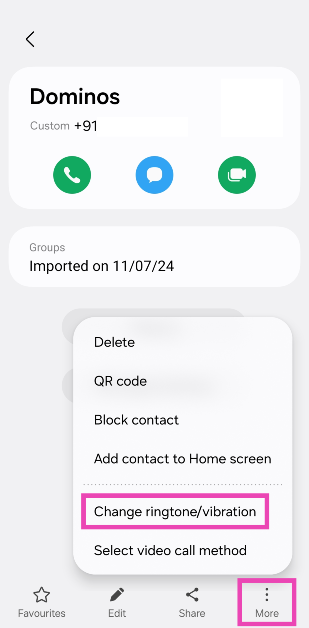 ステップ3:タップしますもっと選択します着信音/振動を変更します。