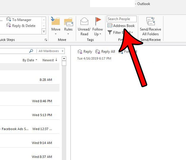 ステップ2:選択しますアドレス帳ウィンドウの上部にあるリボンのオプション。