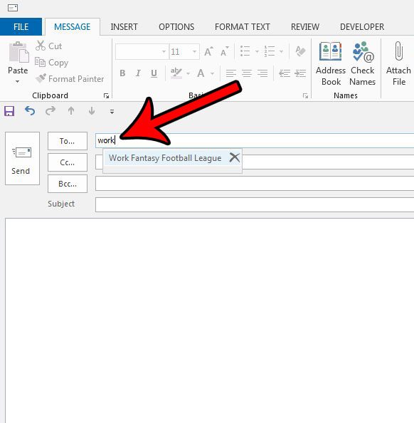 ステップ8:新しい電子メールを作成し、配布リストの名前をに入力しますにウィンドウの上部にあるフィールドを使用して、結果のリストから選択します。その後、通常どおりメールを入力することを続行できます。