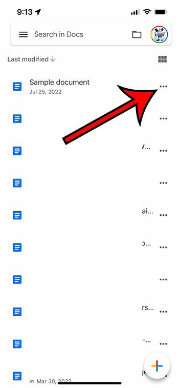 ステップ2:リストされているドキュメントの1つの右側にある3つのドットをタッチします。