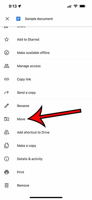 - 選択します動くこのドキュメントをそのフォルダーに入れたい場合。