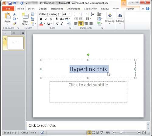 PowerPointでハイパーリンクを作成したので、そのリンクに関するいくつかのことを変更する機能があります。たとえば、現在の色がプレゼンテーションのスタイルと一致しない場合は、ハイパーリンクの色を変更する方法をご覧ください。