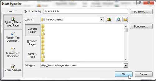 6。クリックしますわかりましたウィンドウの下部にあるボタンは、選択したオブジェクトにハイパーリンクを適用します。