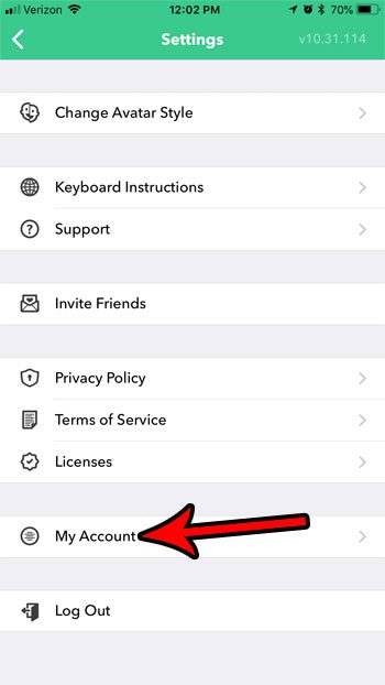 ステップ3:を選択します私のアカウント画面の下部近くのオプション。