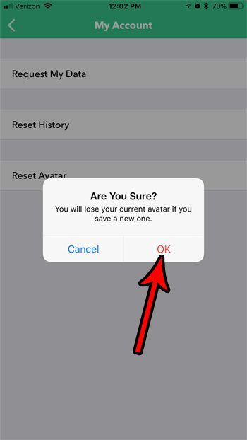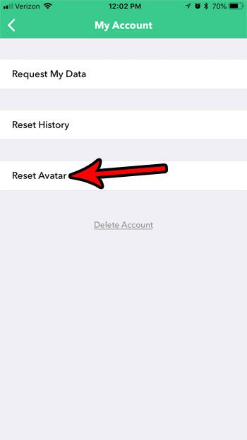 ステップ4:タッチします私のアバターをリセットしますボタン。