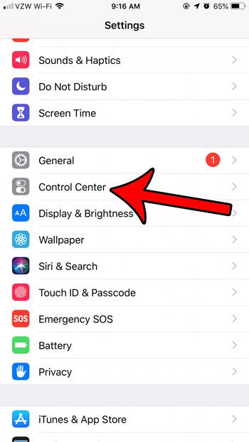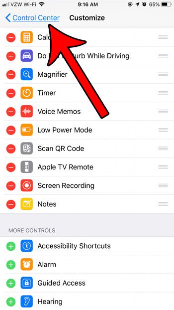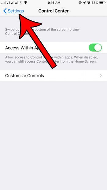 ステップ5:タップしますコントロールセンター画面の上部のボタン。
