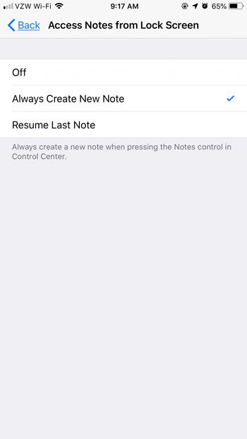 ステップ9:を選択します常に新しいメモを作成してくださいオプション、次に押します家画面の下のボタンは、設定アプリを終了します。