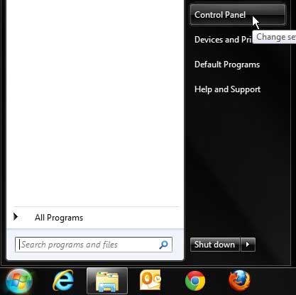ステップ1:クリックします始める画面の左下隅にあるボタン、[コントロールパネルメニューの右側にある列のオプション。