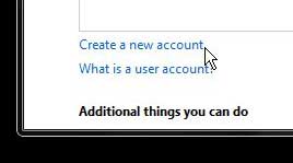 ユーザーアカウントと家族安全リンクをクリックしますステップ3:クリックします新しいアカウントを作成しますウィンドウの下部にリンクします。