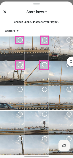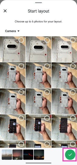 ステップ7:を選択しますレイアウトコラージュ用に選択した画像の数に応じて、画面の下部から。