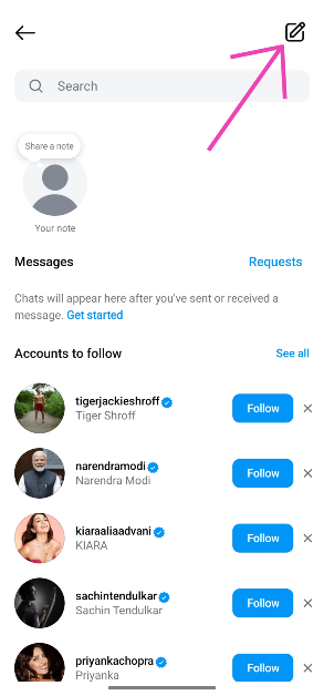 Instagram DMSに移動し、画面の右上隅にある鉛筆アイコンをタップし、メタAIをタップしてチャットボットとの会話を開始します。