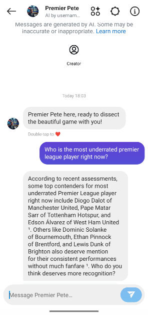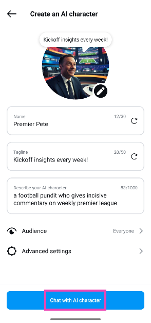これは、InstagramでAI文字を作成する方法です。 AIチャットボットを自分に維持するか、フォロワーやより広いInstagramの視聴者と共有することを選択できます。他に質問がある場合は、コメントでお知らせください!
