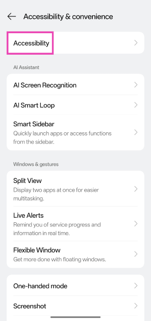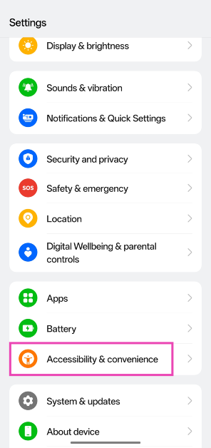 ステップ1:行きます設定タップしますアクセシビリティと利便性。
