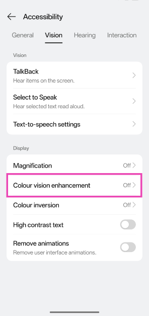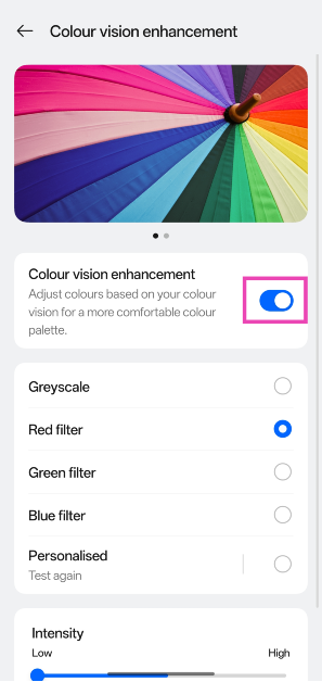 行きます設定>アクセシビリティとコンビニエンス>アクセシビリティ>ビジョン>カラービジョンの強化トグルスイッチをオンにします。リストからカラーフィルターを選択します。