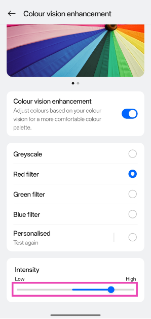 Android 15では、これらのフィルターの強度を変更できます。これらのフィルターを常に使用したくない場合は、画面にショートカットを追加してオンまたはオフにすることができます。