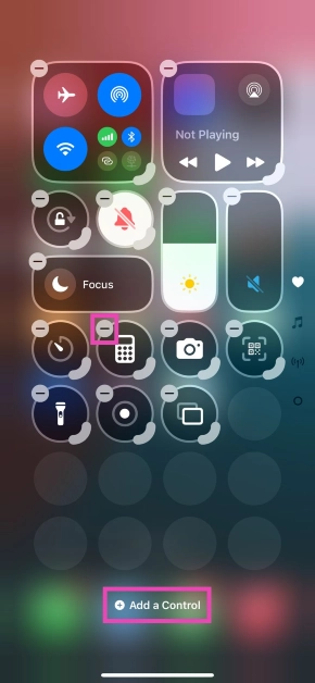 ステップ4:ヒットしますマイナスアイコンタイルの左上隅にあるのは、コントロールセンターから削除します。