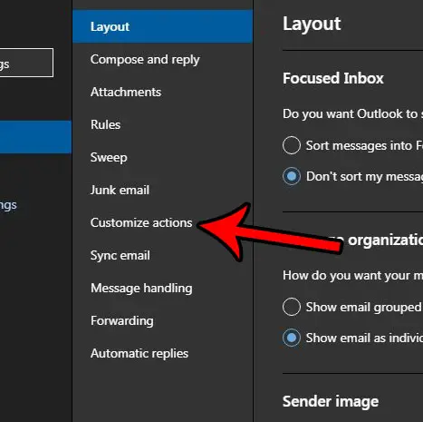 ステップ4:選択しますアクションをカスタマイズしますメニューの中央列のオプション。