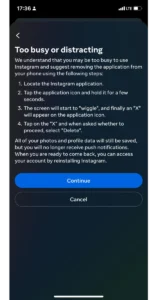 ステップ7:あなたの理由を選択してくださいスレッドとInstagramアカウントを削除してヒットします続く。