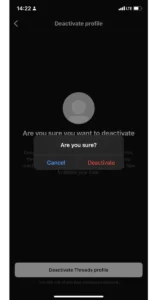 スレッドアカウントを非アクティブ化すると、データの永続的な損失が妨げられます。ユーザー名、投稿、コメント、いいねは非表示になります。つまり、誰もあなたを調べることができません。これは一時的なプロセスであり、アカウントに戻ってサインバックすると、あなたが去った場所から再開できます。