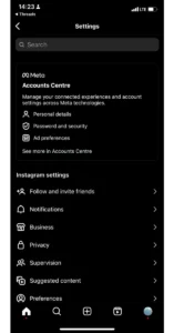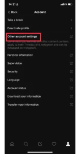 ステップ2:に移動しますアカウントセクション選択しますその他のアカウント設定。このアクションにより、Instagramアカウントに表示されます。