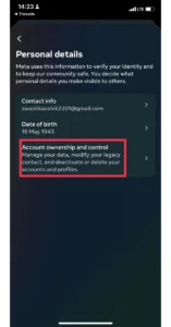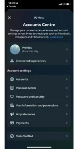 ステップ6:Instagramアカウントにリンクされたスレッドアカウントを選択し、アカウントオプションを削除します。