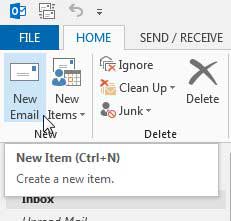 ステップ1:クリックします新しい電子メール窓の左上の角にあるボタンは、新しいメッセージを作成します。