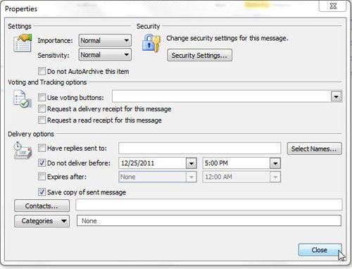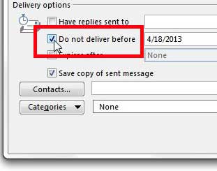 メッセージのコンテンツが時間に敏感なもの(配布リストに出て行く大量電子メールなど)である場合、またはあなたが何か他のことをしていて、上司、同僚、またはクライアントにあなたが実際に働いていたと思うかどうか、メッセージが送信された時間を操作する能力は、2010年のOutlookのメッセージ配信を遅らせる素晴らしい方法です。