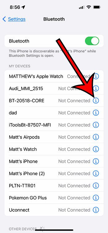 私たちのガイドは、これらの手順の写真を含め、iPhone 13のBluetoothデバイスを削除する方法に関する追加情報を以下に続けます。