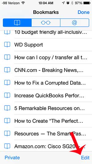 ステップ6:タッチします終わりブックマークの削除が終了したときに、画面の右下隅にあるボタン。