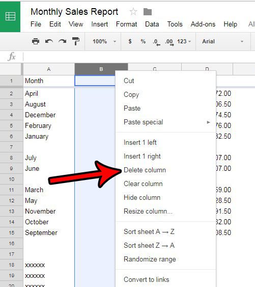 幸いなことに、Googleシートは、データの列全体、または複数の列を削除する方法を提供します。