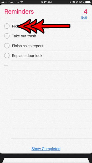 または、以下の方法でリマインダーを削除することもできます。非常に似ていますが、iPhoneのアクションを完了するためにスワイプ方法を使用したくない場合は、良いオプションです。