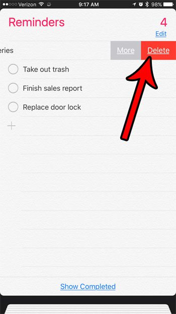 ステップ2:削除したいというリマインダーで左をスワイプします。