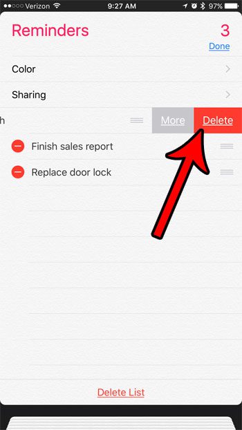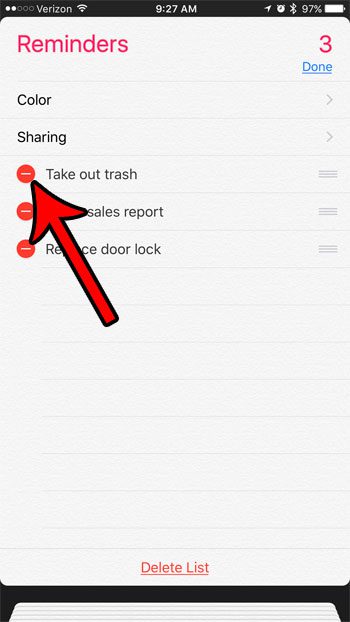 ステップ3:赤をタップします消去リストからリマインダーを削除するボタン。