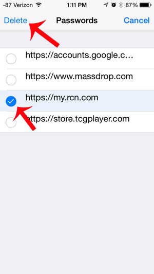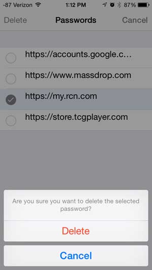 - パスワードを選択して削除してから、タッチします消去オプション。