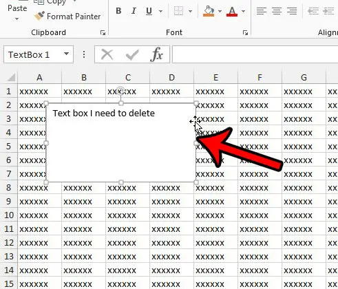 ステップ3:を押します消去またはバックスペースキーボードのキーは、スプレッドシートからテキストボックスを削除します。