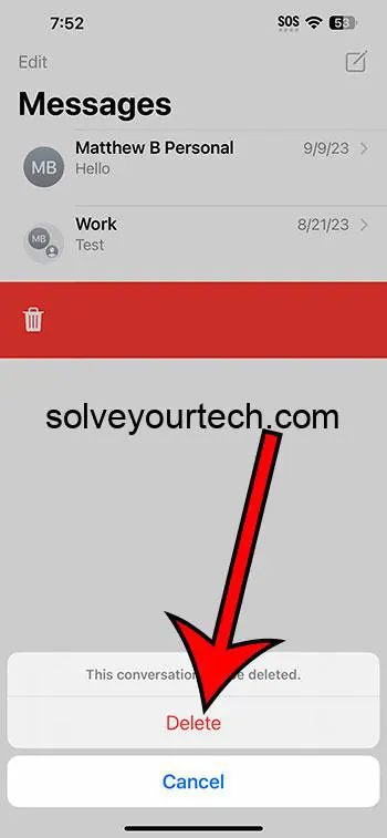 ステップ2:削除する会話を見つけてから、左にスワイプします。