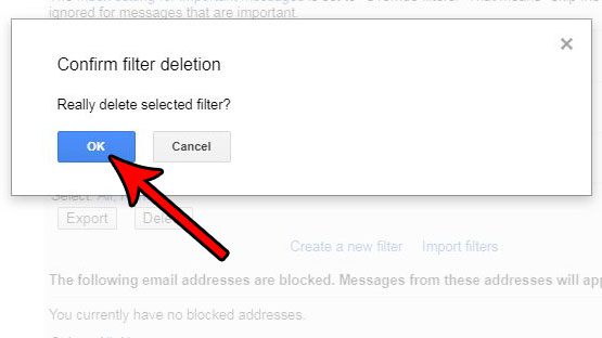 ステップ5:青をクリックしますわかりましたボタンは、アカウントからこのフィルターを削除することを確認します。