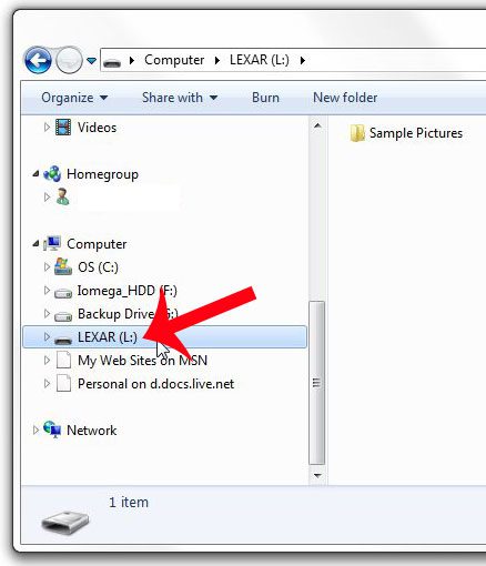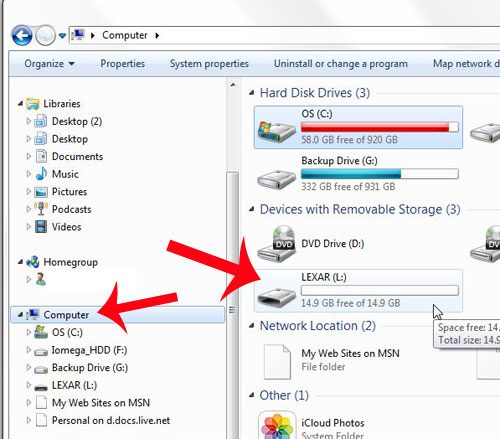 ステップ3:USBフラッシュドライブを下に見つけますコンピューターウィンドウの左側にあるセクション。どのオプションがフラッシュドライブであるかがわからない場合は、コンピューターオプション、および下のフラッシュドライブを確認します取り外し可能なストレージを備えたデバイスセクション。
