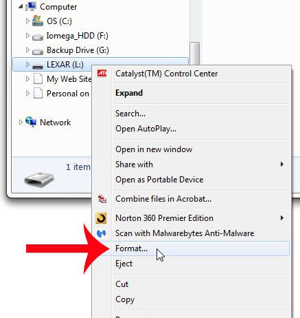 ***以下の手順で選択したドライブが実際にUSBフラッシュドライブであることを確認することが非常に重要です。誤ってコンピューターのハードドライブを選択し、それをフォーマットすると、コンピューター上のすべてのファイルとWindowsのインストールを失う可能性があります。あなたが正しいドライブを選択したことを確信していない場合は、あなたのためにそれを確認できるWindows 7オペレーティングシステムにもっと親しみを持つ人を見つける必要があります。**