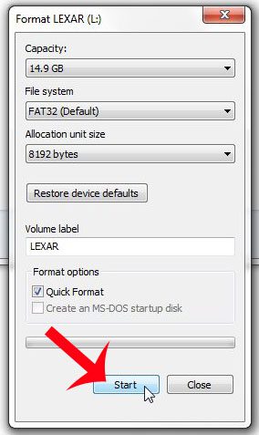 この記事の手順は、Windows 7オペレーティングシステムで実行されました。他のオペレーティングシステムは、USBフラッシュドライブをフォーマットする機能も提供しますが、手順はわずかに異なる場合があります。