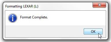 ステップ7:クリックしますわかりましたポップアップウィンドウのボタンが表示されますフォーマット完了、次にクリックします近いのボタン形式ウィンドウ。