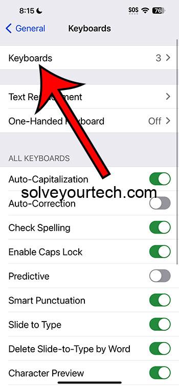 - 「キーボード」をタップして、インストールされているすべてのキーボードのリストを表示します。