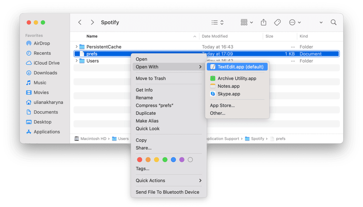 - Prefsファイルを右クリックし、> TextEditでOpewを選択します。