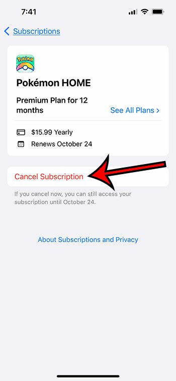 ステップ5:タッチしますキャンセルサブスクリプションボタン。
