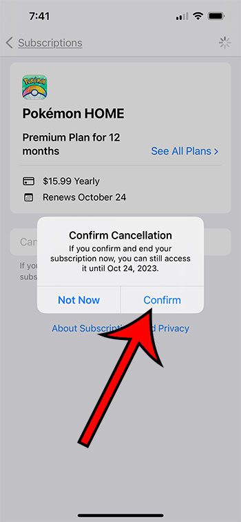 ステップ6:タップします確認するボタンは、現在の用語の終わりにこのサブスクリプションをキャンセルすることを確認します。