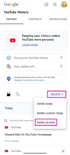 注記:これにより、YouTubeウォッチの履歴も削除されます。