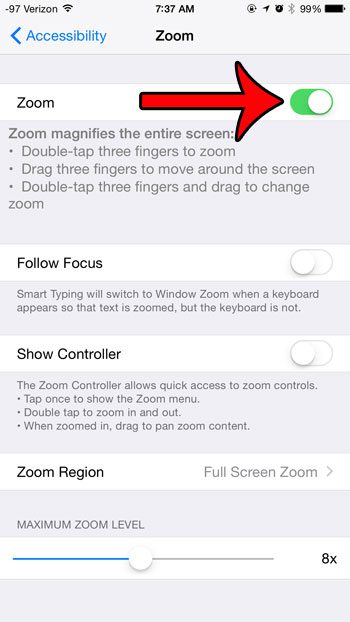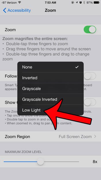 このメニューを終了できます。ズームメニュー。この設定は、画面に戻るまで続くことに注意してくださいステップ7選択しますなしオプション。